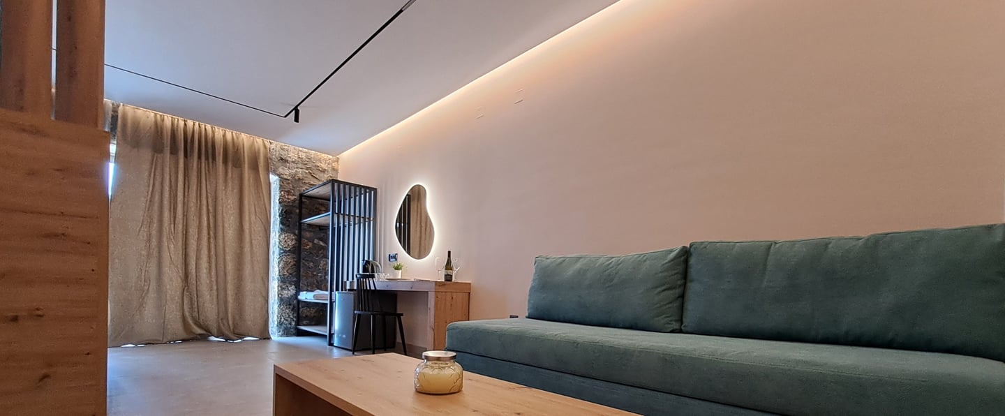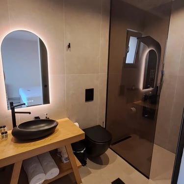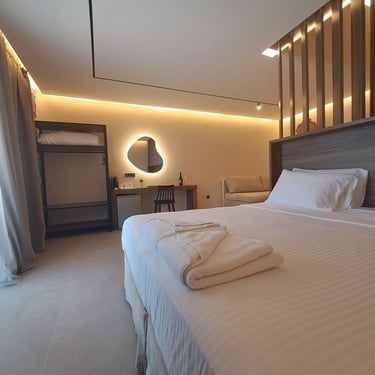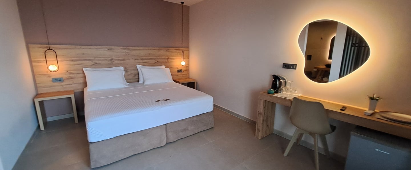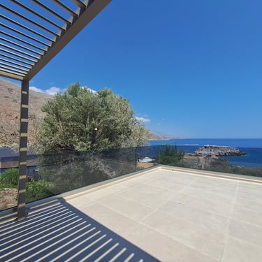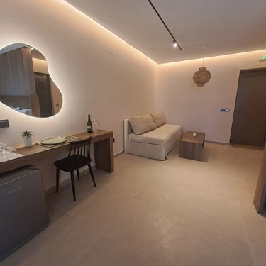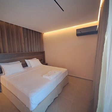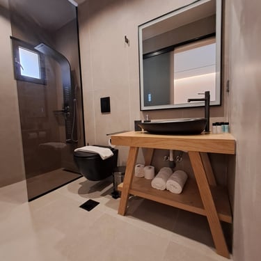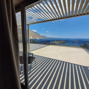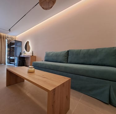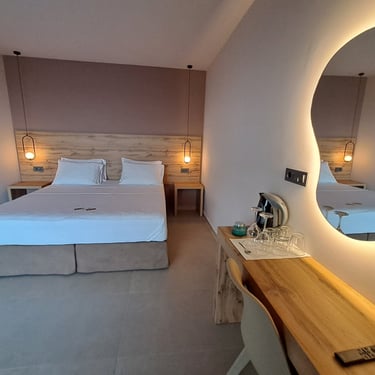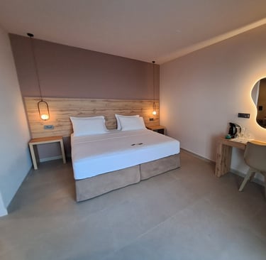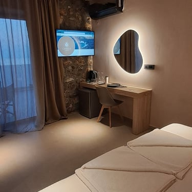 Each of our bespoke rooms is thoughtfully designed to offer a blend of natural beauty and refined comfort. Each room is crafted with local stone, creating a harmonious connection with the landscape, while modern touches ensure an indulgent stay. Floor-to-ceiling windows invite the endless blue of the Libyan Sea inside, and private balconies provide the perfect spot to soak in the unparalleled views and night skies full of stars. Every detail is designed for your absolute relaxation. Whether you're seeking a peaceful retreat, a romantic getaway, or a unique seaside experience, your stay at Castella promises unique and unforgettable moments.